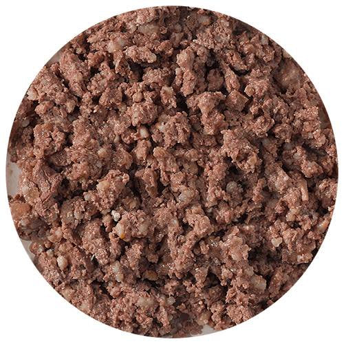 有機チキン 60%、有機チキンその他の部位 35%(有機心臓、有機肺、有機肝臓、有機胃袋、有機首)、有機キビ 2%、有機コメ 2%、有機ヒマワリ油 0.5%、有機キクイモ 0.5% 肉と臓器の含有率95%以上