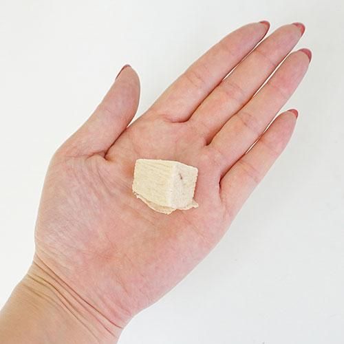 栄養そのままで、お湯で戻すと生肉をボイルしたような香りと食感が楽しめます。