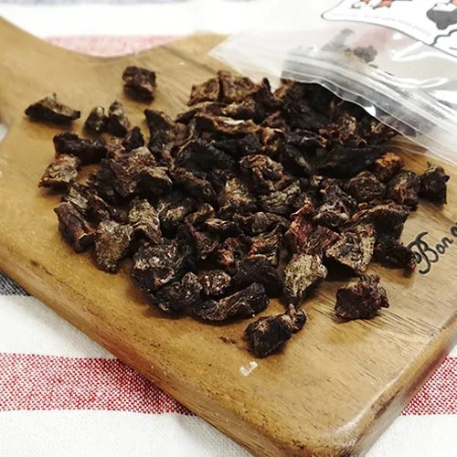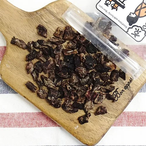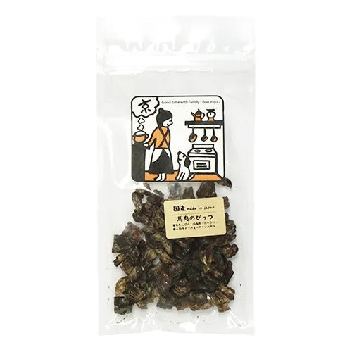 栄養価が高く低脂肪の馬肉おやつ★国産馬肉を乾燥し、小さくカット!天然素材の旨味と栄養素をギュッと閉じ込めました。保存料不使用なので安心安全。