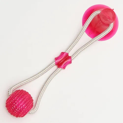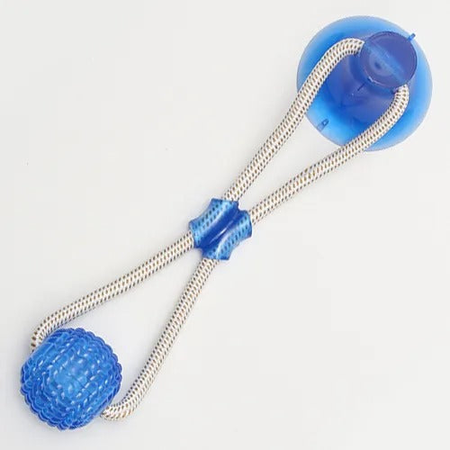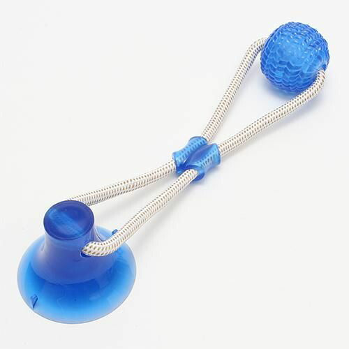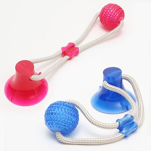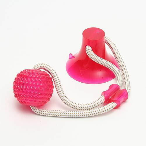 吸盤はロープを介してゴムボールと一体になっていますので、一人でボールを咥えて引っ張り遊びをすることができます。