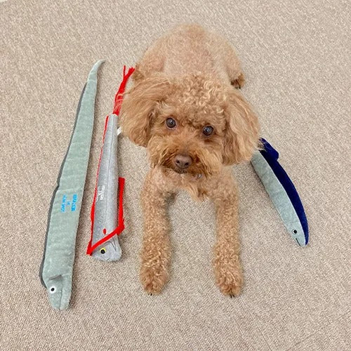 サンマやリュウグウノツカイよりも長く、お腹の部分にはおやつが入れられるポケット付き♪