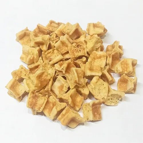 二度焼きしたワッフルを、小型犬でも食べやすい、ひとくちサイズのラスクにしました。