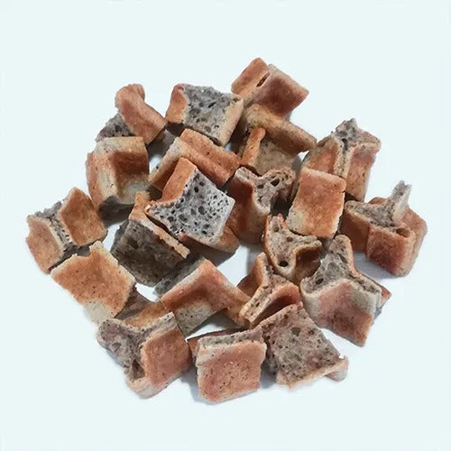 二度焼きしたワッフルを、小型犬でも食べやすい、ひとくちサイズのラスクにしました。