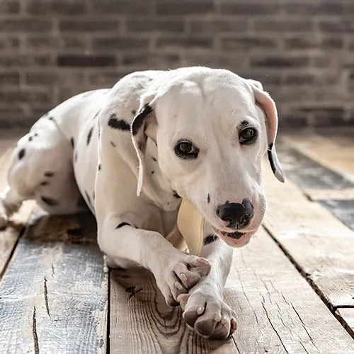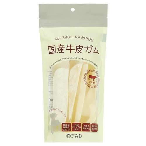 国内で食用に飼育された牛の皮を贅沢に使用。加工から管理まで、すべての工程を一貫して国内で行った、完全国産の無添加牛皮ガムです。