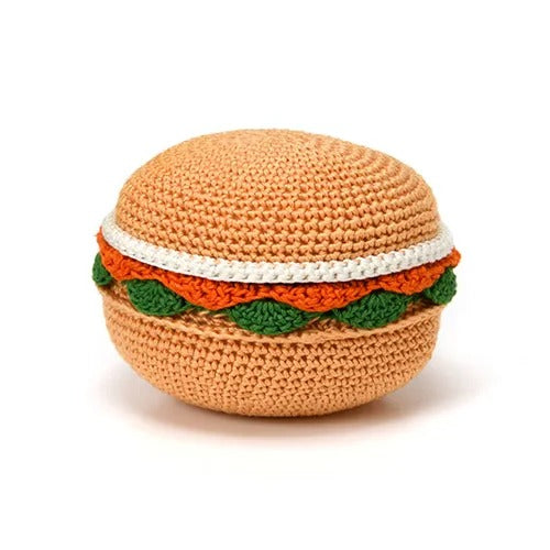 【Solgra】ソルグラ 編みぐるみハンバーガー 犬用 おもちゃ 編みぐるみ 鳴り笛 ピーピー音