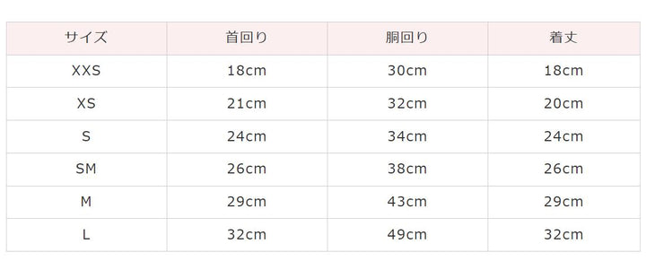 サイズ 首回り 胴回り 着丈