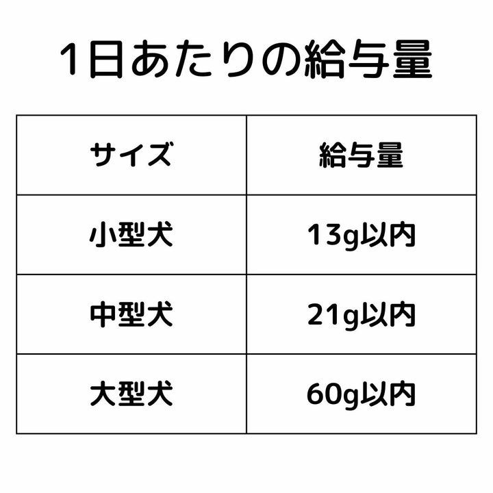 また、食事量も考慮し、カロリーや愛犬の状態に応じて与えてください。