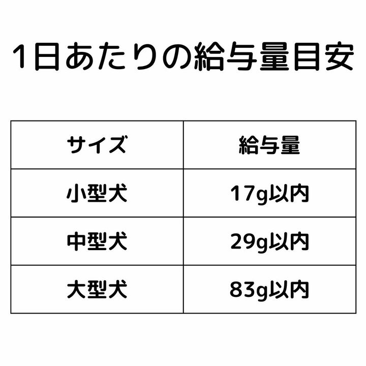 また、食事量も考慮し、カロリーや愛犬の状態に応じて与えてください。