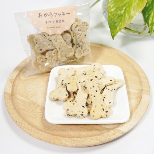 愛犬の身体に優しい無添加おからクッキー♪安心安全なおやつを手作りでお届けします。お豆腐屋さんの出来たての生おからを使用した、かわいいボーン型のおからクッキーです。