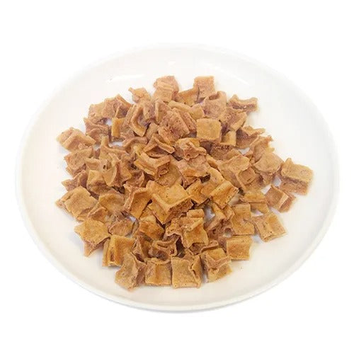 秋田県湯沢市の名産品「秋ノ宮いちご」を使用。爽やかないちごの風味が広がるワッフルラスクです。二度焼きしたワッフルを、小型犬でも食べやすい、ひとくちサイズのラスクにしました。
