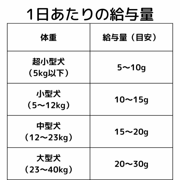 与える量は、犬種・体重・年齢・運動量によって異なりますので、状況を見て調節して下さい。