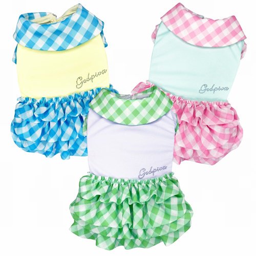 【GODPIVA】COOLギンガムチュールワンピース[ゴッドピバ]犬 服 ドッグウェア ギンガムチェック 防虫加工 吸熱 放熱