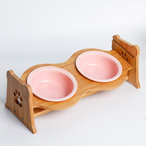 【Petifam】ペティファーム 陶器製バンブースタンド付き ダブルフードボウル <全4色>犬用 食器 食器台 パステルカラー 陶器製 食洗機可