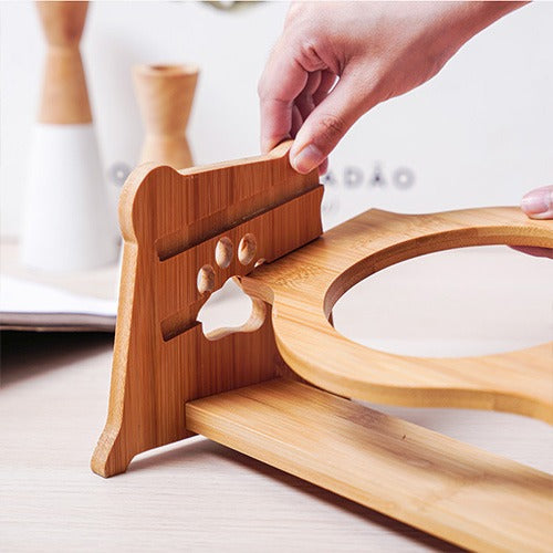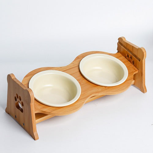 ★ダブルタイプ 高さ調節が可能なバンブー素材の食器台&陶器製食器のセットです。食事がしやすいよう、食器台に15℃の傾斜を付け、手前側を低く設計しました。
