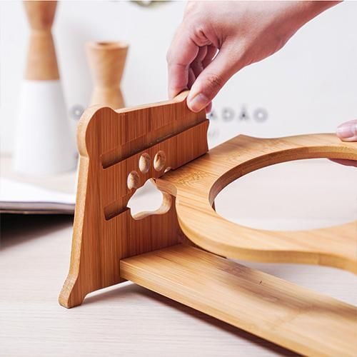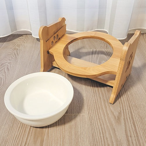 ★シングルタイプ 高さ調節が可能なバンブー素材の食器台&陶器製食器のセットです。食事がしやすいよう、食器台に15℃の傾斜を付け、手前側を低く設計しました。