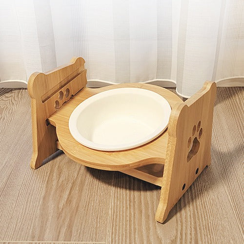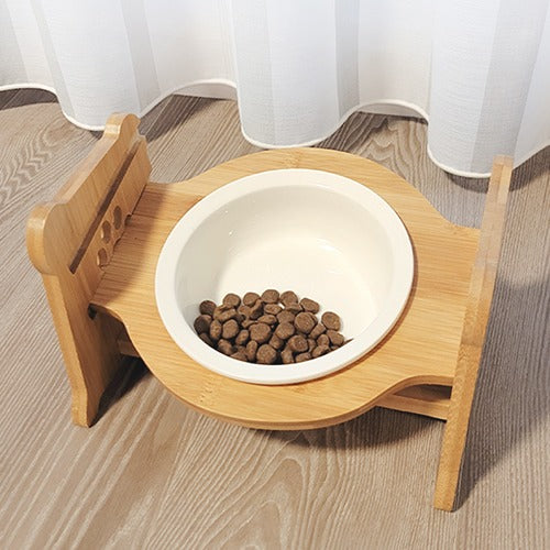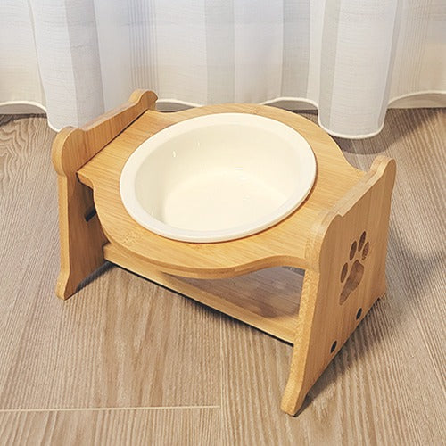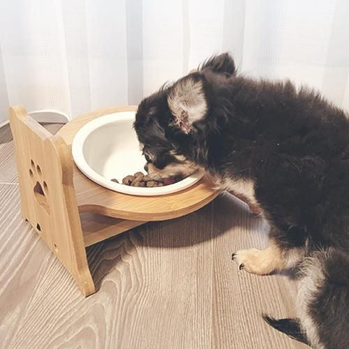 【Petifam】ペティファーム 陶器製バンブースタンド付き シングルフードボウル <全4色>犬用 食器 食器台 パステルカラー 陶器製 食洗機可