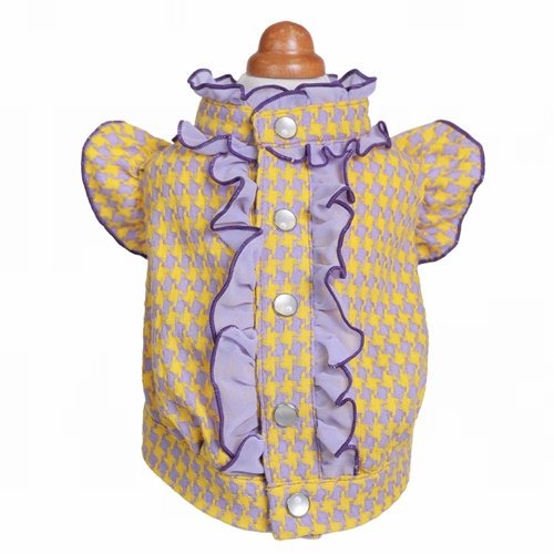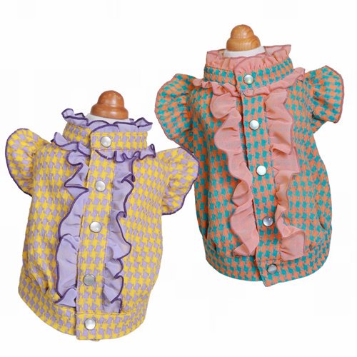 【GODPIVA】Hound Toothフリルブラウス[ゴッドピバ]犬 服 ドッグウェア フリル 千鳥格子柄 バルーン仕様 ガーリー