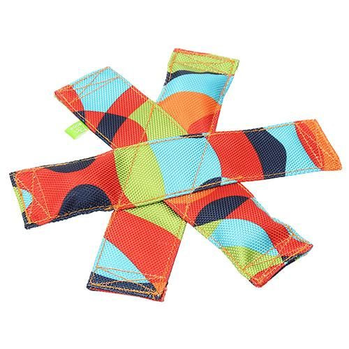 「ヘックスタグ」は、三本の短冊をフリスビー型に縫い合わせたおもちゃです♪