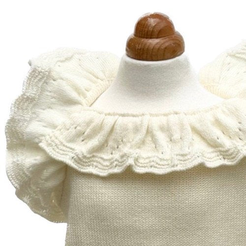 首回りにはスカラップのフリルを施し、甘めのテイストを取り入れました。