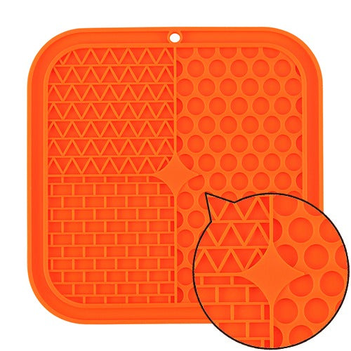 ペットの健康維持を食べ方から見直す、犬猫兼用早食い防止食器★水分の多いウェットフードなどを時間をかけて食べられるよう開発されたフードマットです。