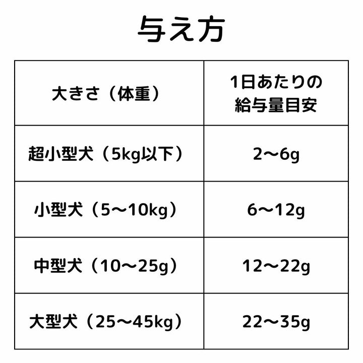 犬種・年齢・生活環境・活動量に応じて適宜調節しながら与えてください。
