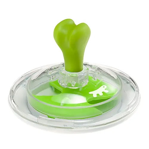 [3]キャップを持ち上げ穴の中におやつを入れます。この時、わんちゃん・ねこちゃんがおやつに集中していることを確認してください。