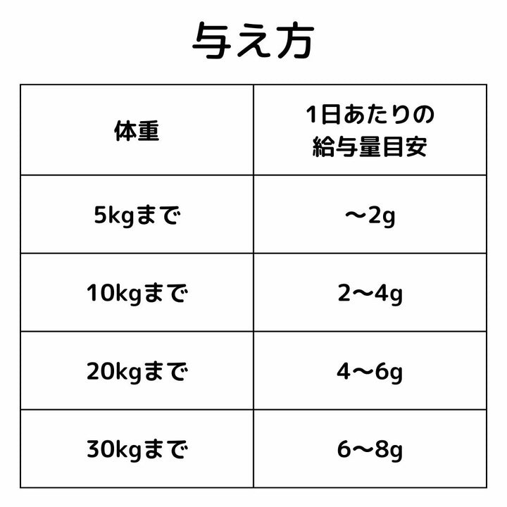 年齢・生活環境・活動量・健康状態に応じて適宜調節しながら与えてください。