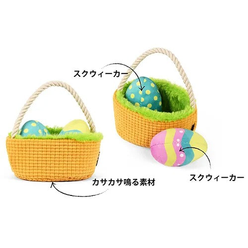 【P.L.A.Y.】プレイ ヒッピティホッピティ エッグバスケット 犬用 おもちゃ ぬいぐるみ たまご スクイーカー ベロア製