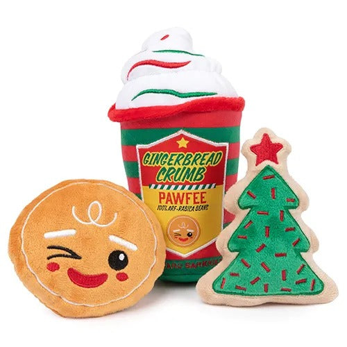 【FuzzYard】ファズヤード クリスマストイ ジンジャークラムパウフィー3PK 犬用 おもちゃ ぬいぐるみ スクイーカー ノンアレルゲン加工