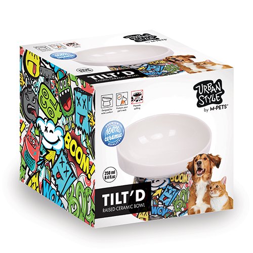 【M-PETS】エムペッツ URBANSTYLE TILT'Dレイズドセラミックボウル 犬用 食器 フードボウル POP グラフィックデザイン 陶器製 化粧箱入り