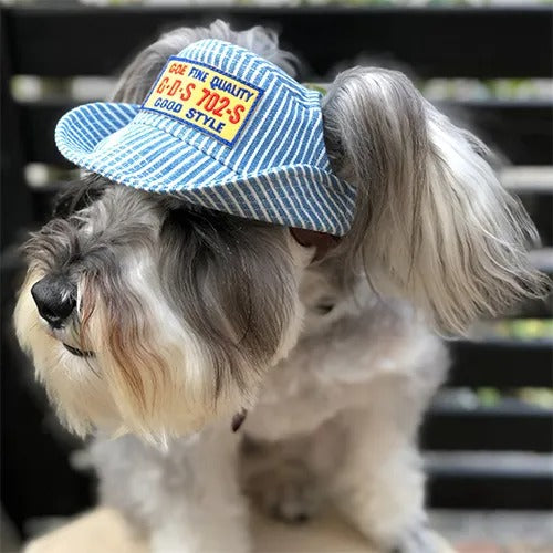 さらに、わんちゃんの体格に合わせて首紐を調整する(締める)ことでサイドの紐が引っ張られ、帽子全体に下方向へ引っ張る力が働き、固定力をアップさせています。