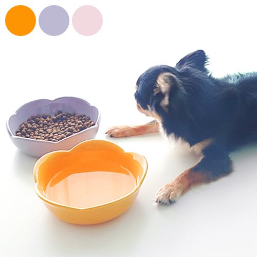 【Petifam】ペティファーム フラワーセラミックボウル 犬用 食器 フードボウル ウォーターボウル お花型 陶器製 食洗器可