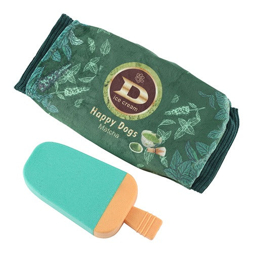 アイスの袋にはわんちゃんの興味を引きつける、カシャカシャ♪素材を使用。