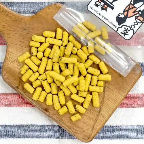 生のかぼちゃをペースト状にし、生地に練りこみました。カリカリ食感がたのしい♪ほんのり甘いおやつです。小粒サイズに仕上げているので与えやすく食べやすい!
