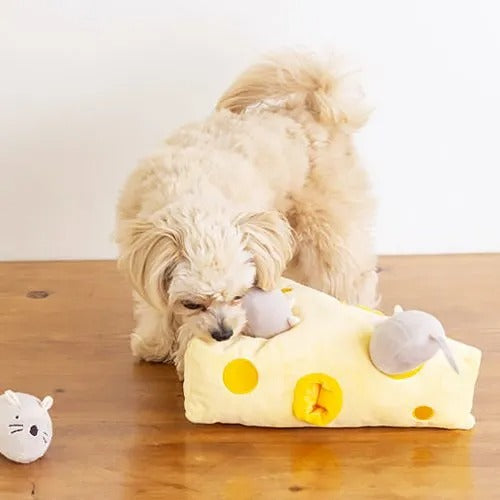 【Solgra】ソルグラ チーズかくれんぼ 犬用 おもちゃ 知育トイ ぬいぐるみ ピーピー ガサガサ 仕掛け 超小型犬 小型犬