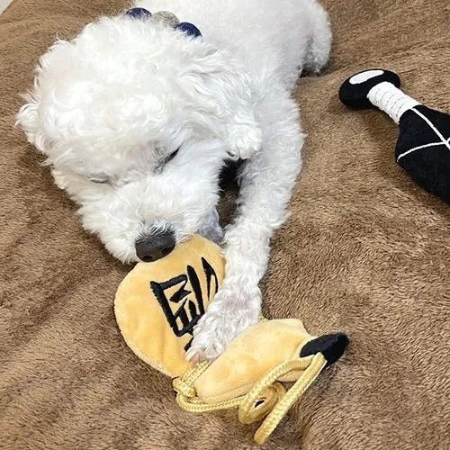 ・遊んでいる最中に壊れてしまったら、すぐにペットから取り上げて、生地や素材を飲み込まないようにしてください。