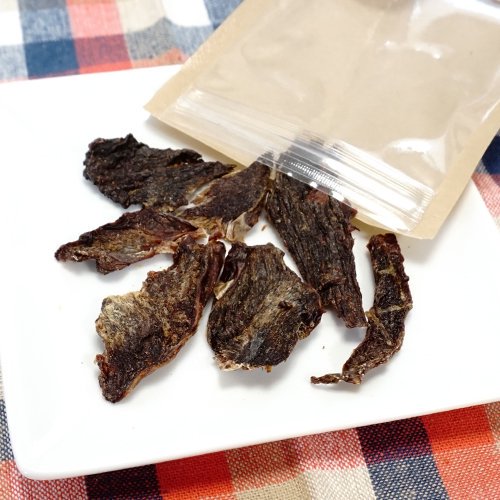 オーストラリア産のカンガルー肉をじっくりと焼き上げ、風味豊かなパリパリおやつに仕上げました。