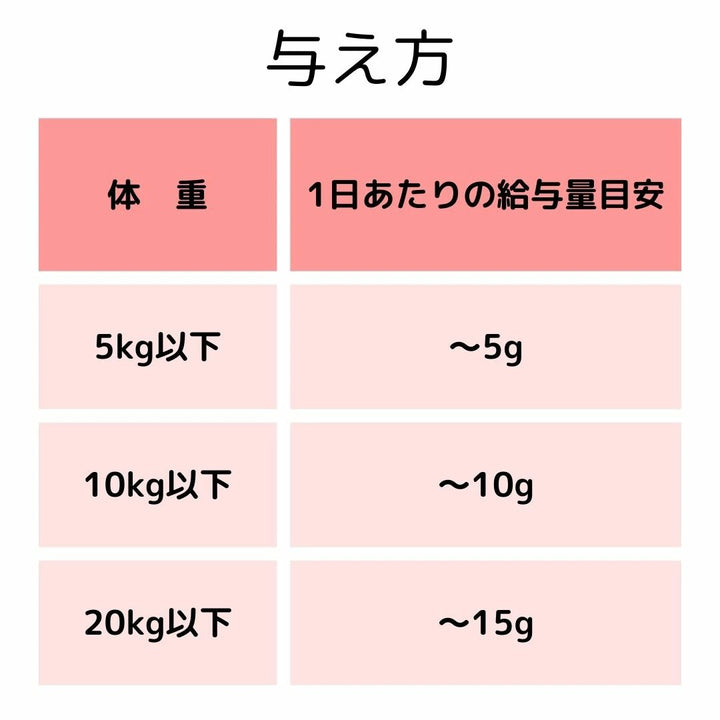年齢・生活環境・活動量・健康状態に応じて適宜調節しながら与えてください。