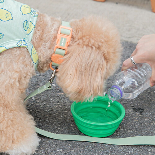 コンパクトに折りたたむことができる携帯用ボウル★付属のカラビナでお散歩バッグやリードに引っ掛けて持ち運ぶことができます♪