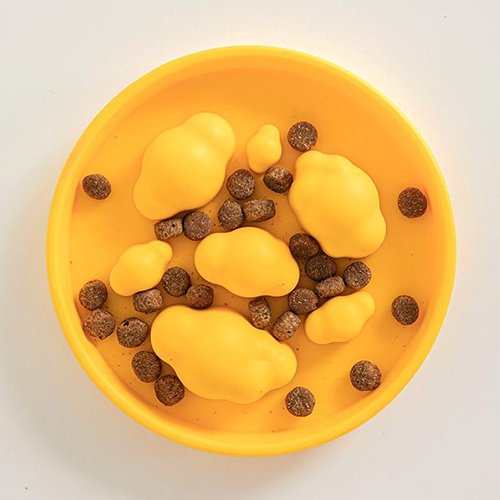 雲モチーフのかわいい凹凸が付いたスローフィーダー★大きさの違う凹凸が早食いを防止し、食事の時間を長く楽しむことができます。