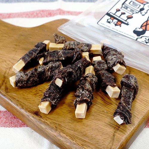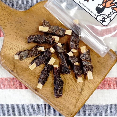 チーズに牛肉を巻き付けた美味しおやつ★チーズと牛肉、ダブルでおいしい♪噛み応えたっぷりのおやつです。