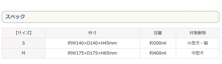 S 約W140×D140×H45mm 約200ml 小型犬・猫
