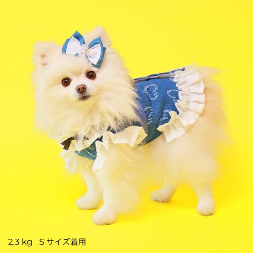【GODPIVA】COOLガーリーデニムハーネス[ゴッドピバ] 犬用 胴輪 ハート リボン デニム コットンレース 防虫加工