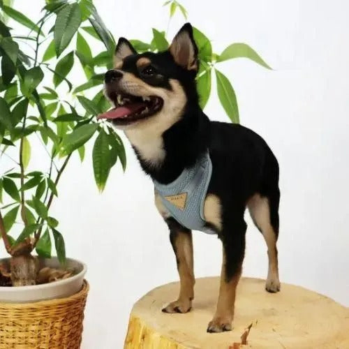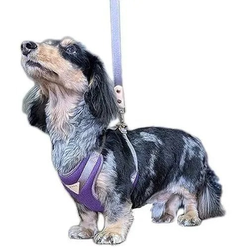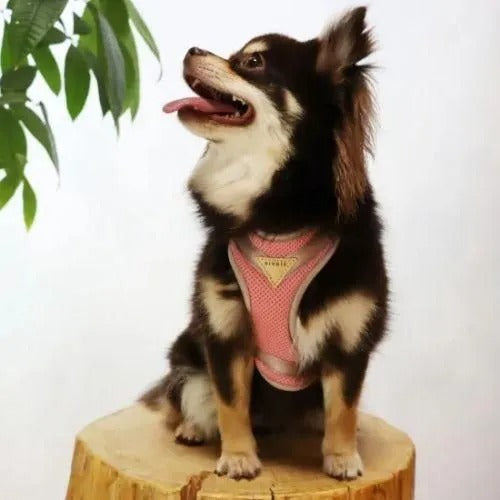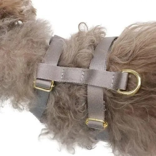 身体を全体的に優しく包み込み、衝撃を和らげるコロンハーネス 一度サイズを調節したら上で、ワンタッチでスムーズにお散歩にでかけられます!