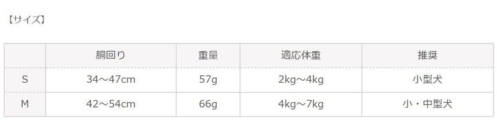 S 34〜47cm 57g 2kg〜4kg 小型犬