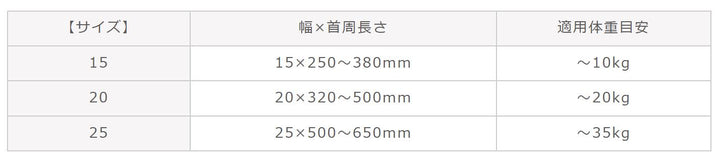 クッション性が高く、軽くて丈夫な合成ゴム素材「ネオプレン」を使用した首輪です。