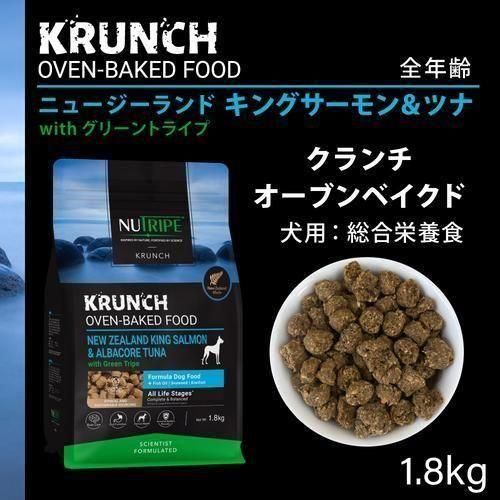 【NUTRIPE】ニュートライプ クランチ オーブンベークド キングサーモン&ツナwithグリーントライプ(ドッグフード)犬用 ドライフード オールライフステージ グレインフリー 総合栄養食 天然サーモン マグロ オメガ3脂肪酸 ビタミン 被毛 肌 関節 健康サポート