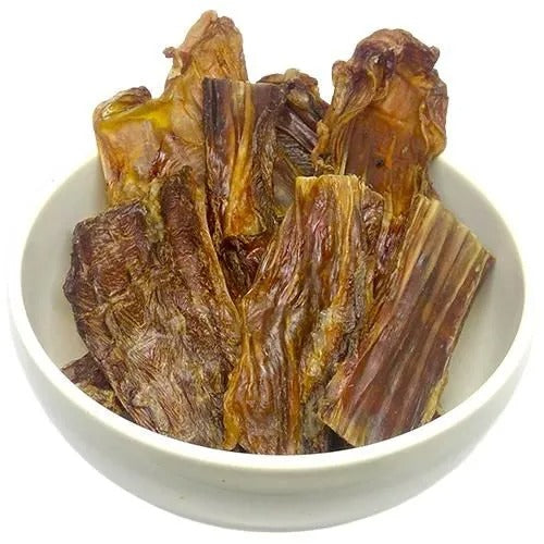 豚の食道を乾燥させた、適度に噛み応えのあるおやつ。