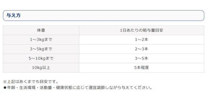 ●年齢・生活環境・活動量・健康状態に応じて適宜調節しながら与えてください。