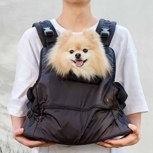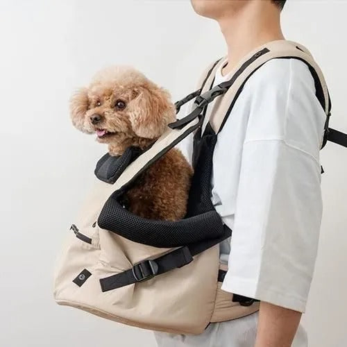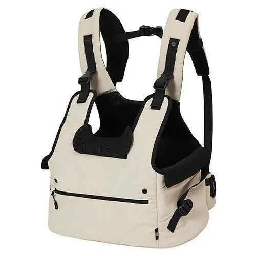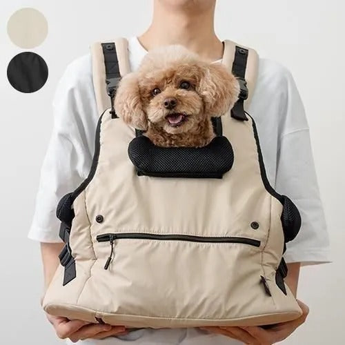 ペットの体重を分散し、肩や腰への負担を軽減する前抱き専用キャリーバッグ。